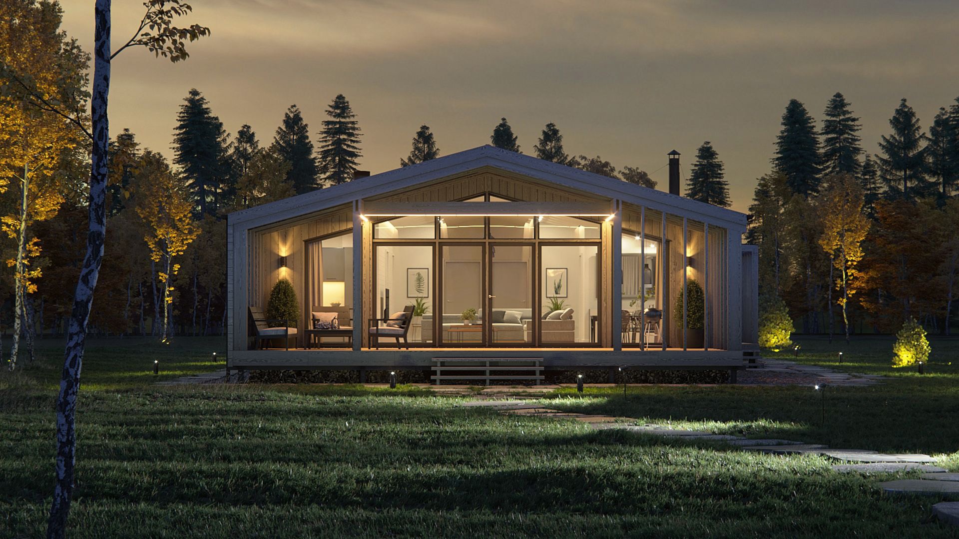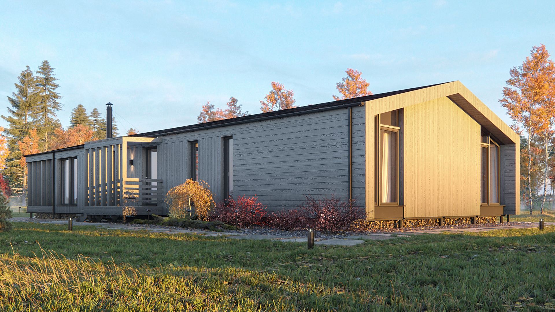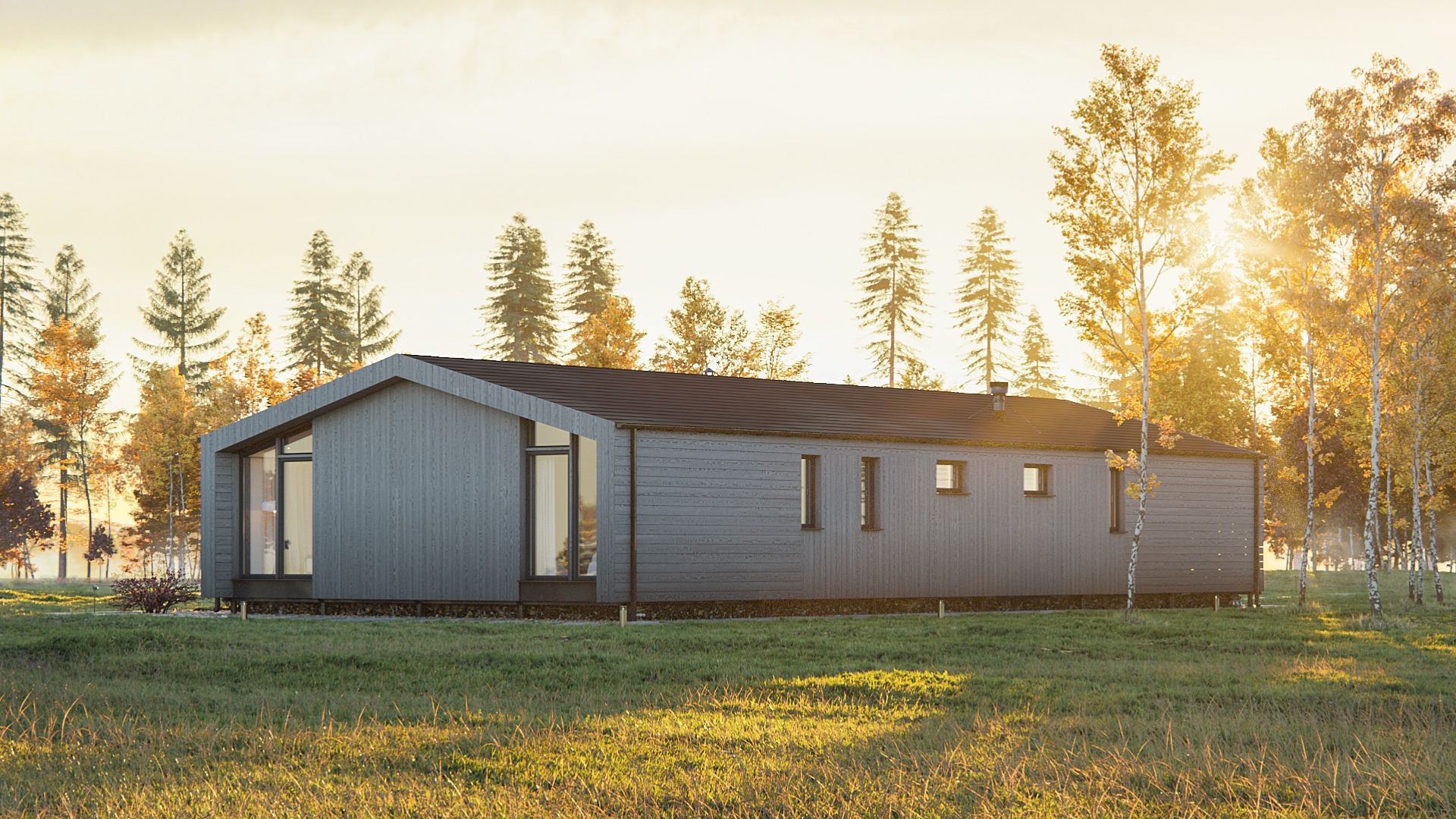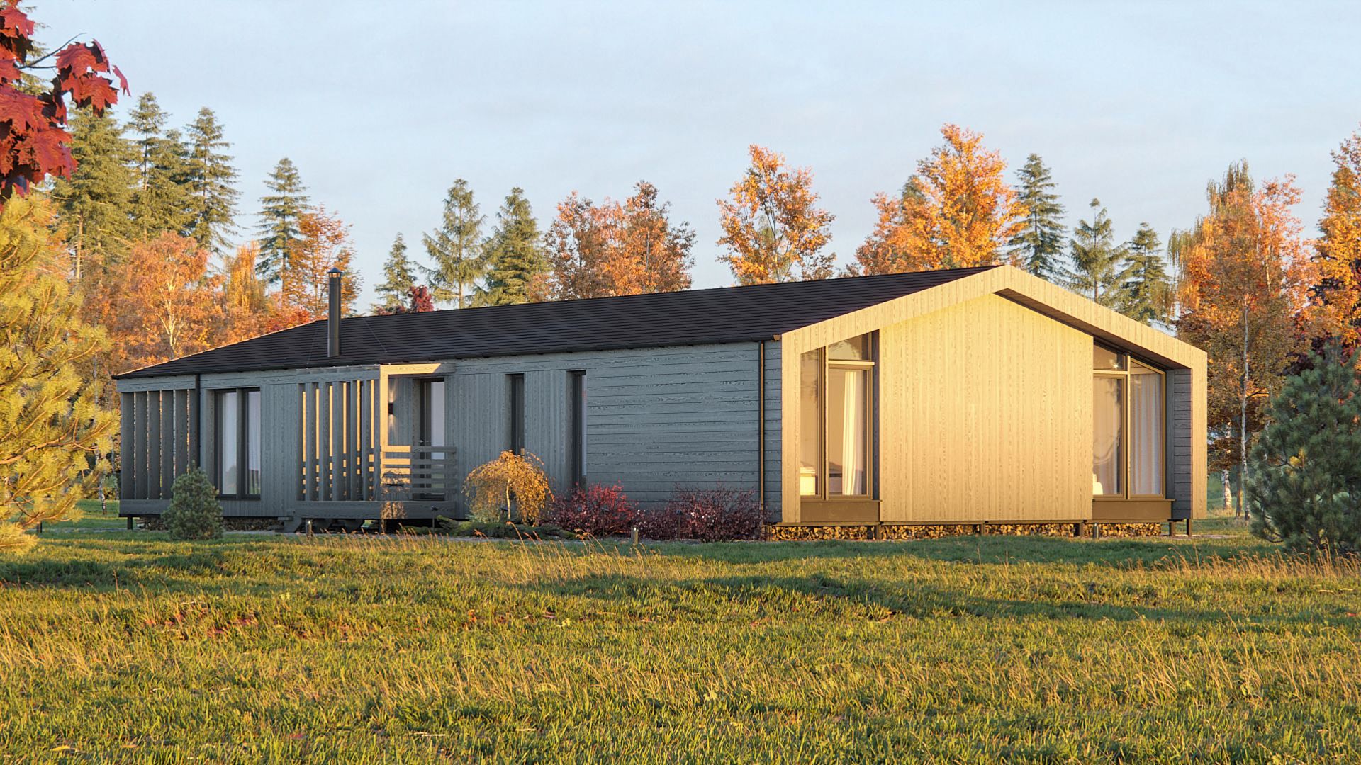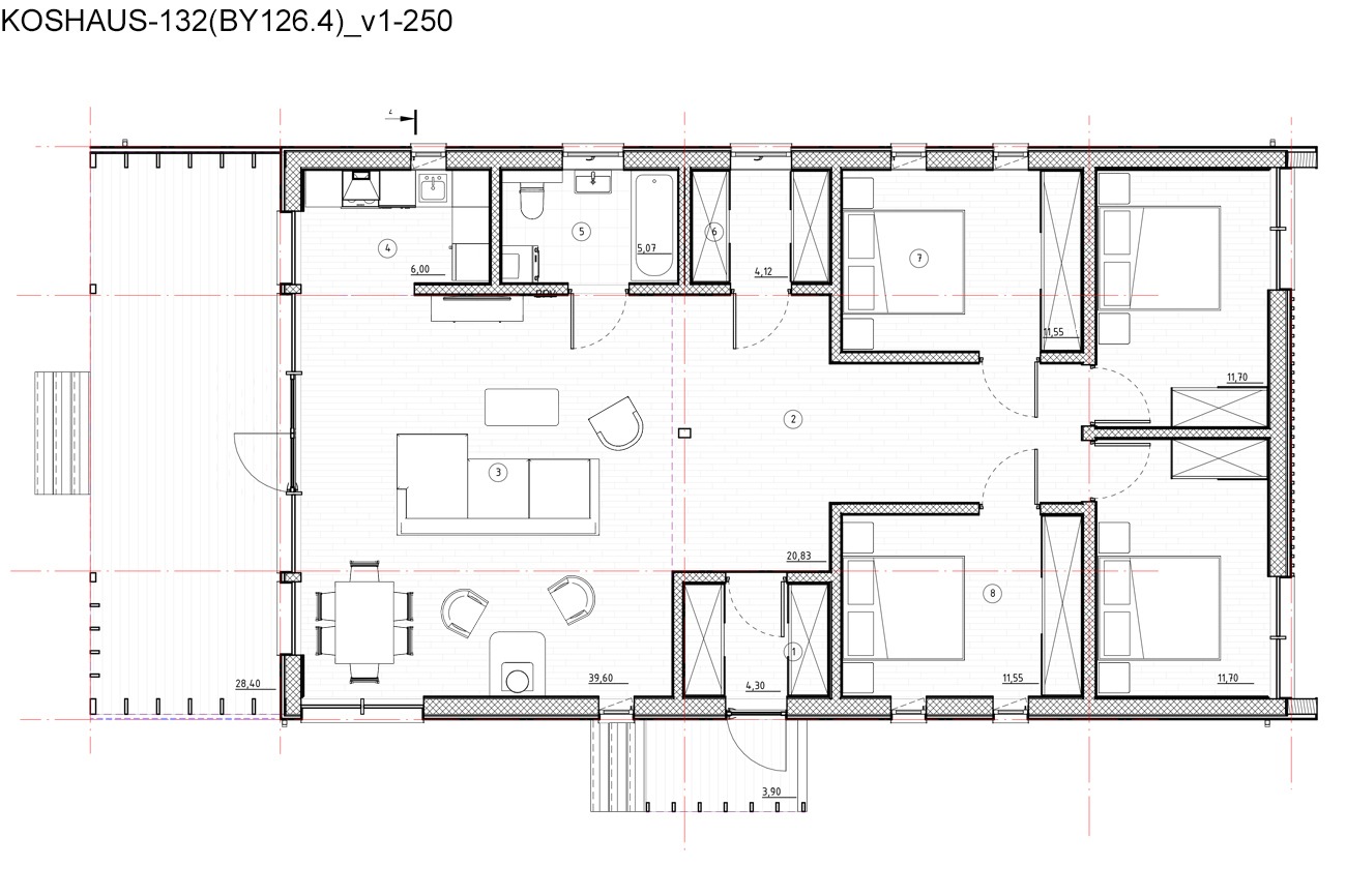 KOSHAUS-132 is designed specifically for a big family. The useful area of the house is 126.40 m2 with a spacious veranda of 29.02 m2 will accommodate not only a big family, but, if necessary, the same number of guests. 4 bedrooms, living room, kitchen, bathroom, storage room, vestibule. Veranda – a place for summer rest. The area of the house allows you to additionally place 2 bathrooms, a sauna or an office. There are various options for planning the house and orientation of the main facade.